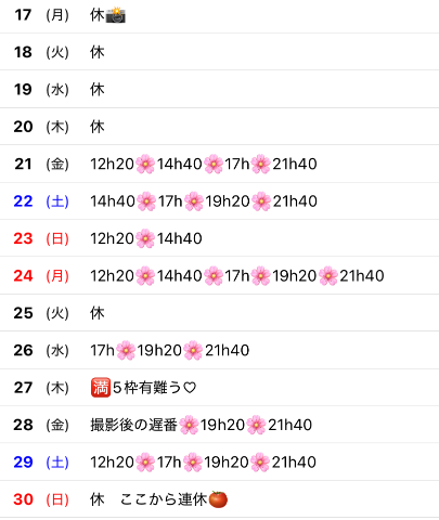 どちらも10時から17時まで出勤しますよ❤️