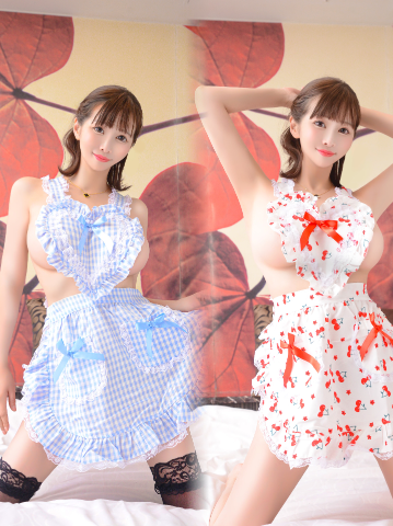 🌸裸エプロン🌸水色チェック🌸さくらんぼ🌸