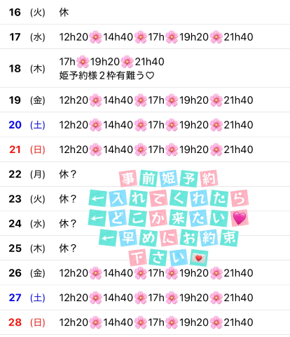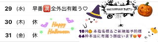 (⚠️11月15日が、シフトをお店に提出する期限ですので、もしそれまでにお約束いただけたら大変有難いですし、休→出勤に微調整可能です🤗)