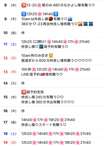 13月→10am枠開放しました🌞🌸12h20🌸14h40🌸17h🌸21h40