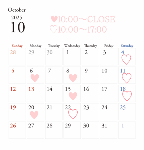 10月🎃7火曜日以降、🗓️🈳枠がもりもり出現します(´∀`=)