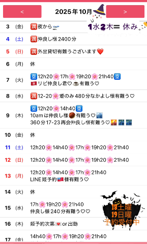 10月後半はもしあなたの来られるところが決まっていたら、なる早で姫予約お願い致します💓imgimg😍